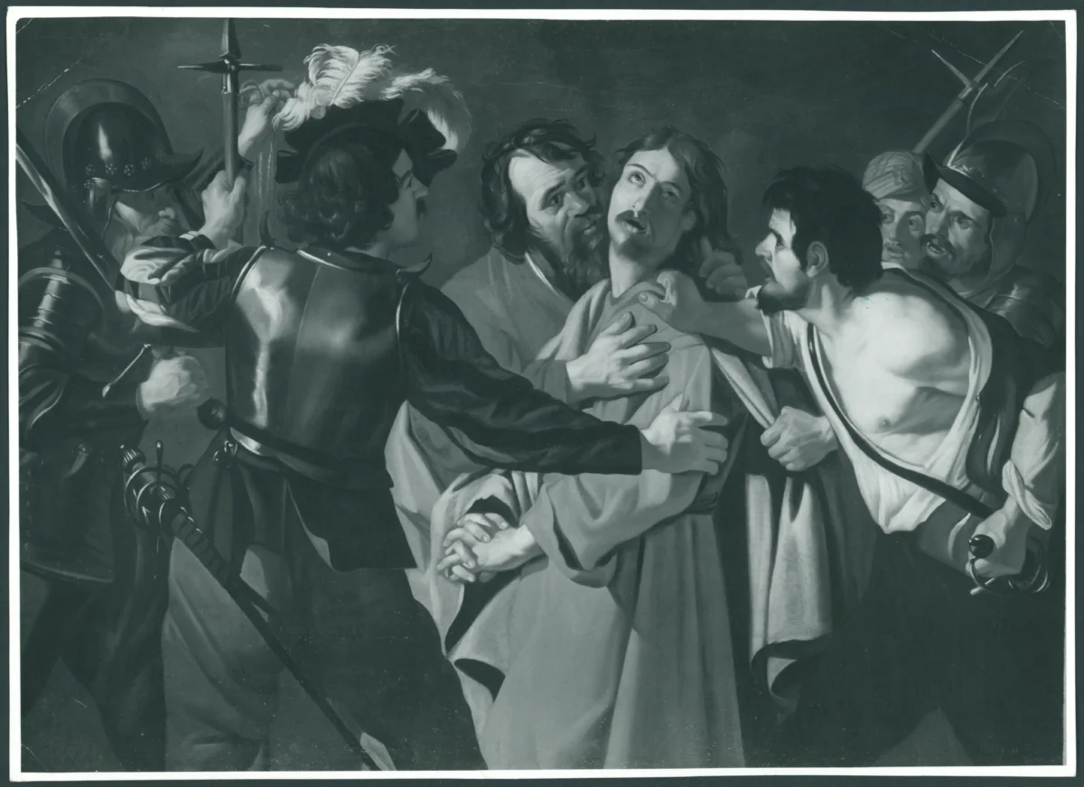 Dirk van Baburen, Cattura di Cristo nell'orto, Roma, Galleria Borghese, originale e copia