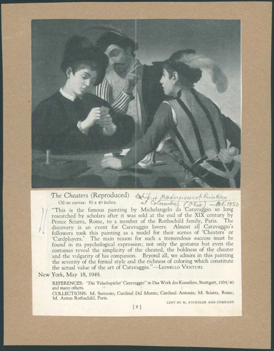 - Caravaggio, Giocatori di carte (I bari), Kimbell Art Museum, Fort Worth, originale e copie