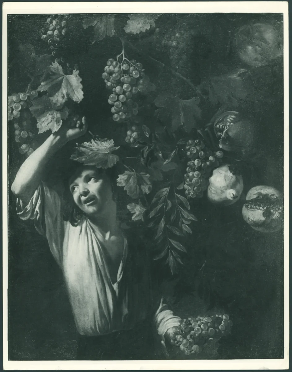 - Natura morta con frutta e giovane che coglie l'uva